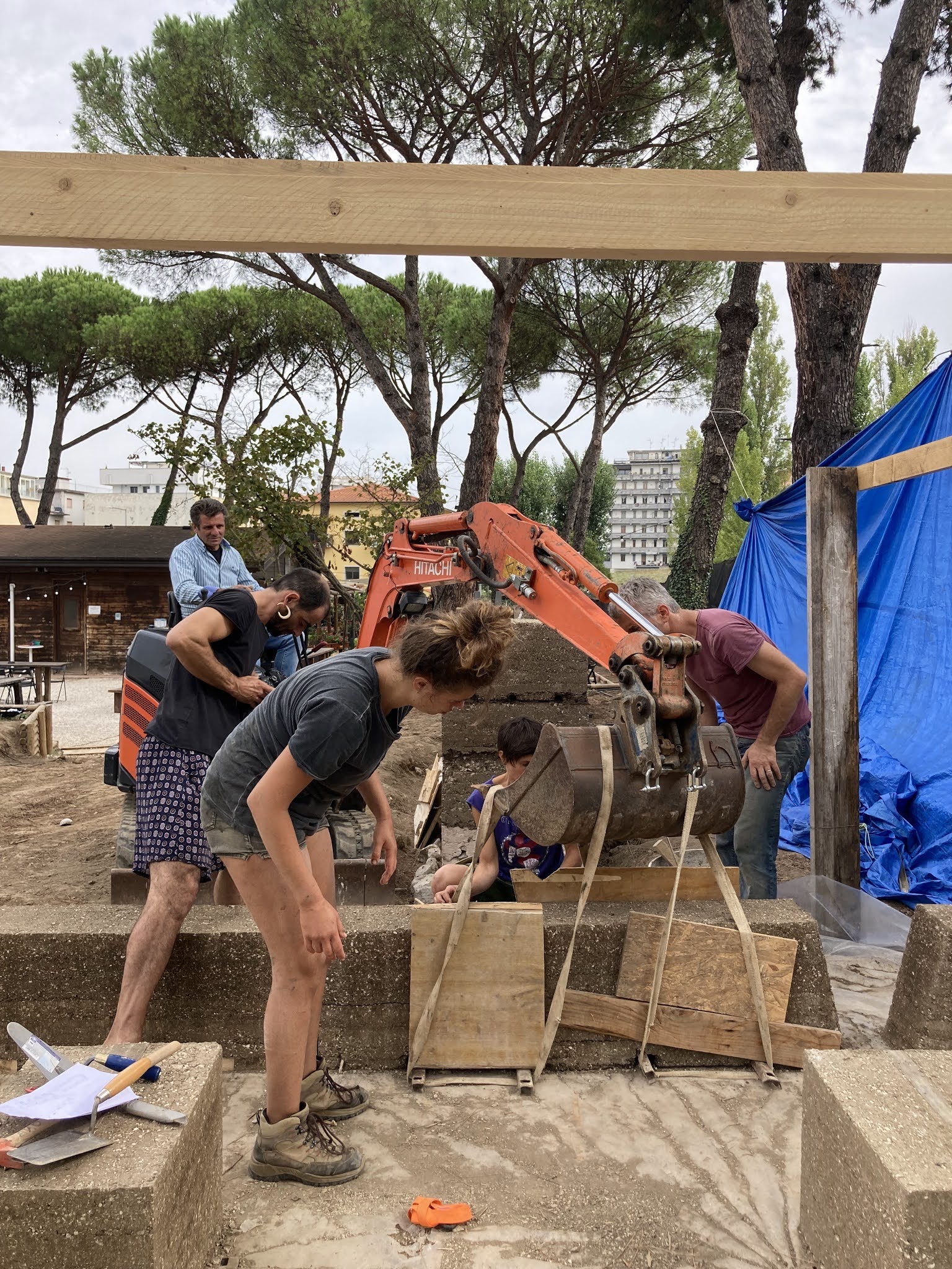 La settimana è cominciata con l’attesissima giornata del trasporto dei moduli di pisè prefabbricati. Con l’aiuto di Donato e del suo escavatore abbiamo trasportato tutti i blocchi realizzati sull’elemento ACQUA; la delicata operazione ha richiesto attenzione e cura, ma a fine giornata siamo riuscitə ad ottenere un ottimo risultato.